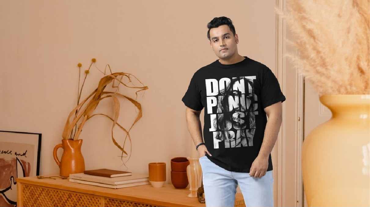 guniaafashionsMen Plus Size Black Front Customised Printed Round Neck T-Shirt