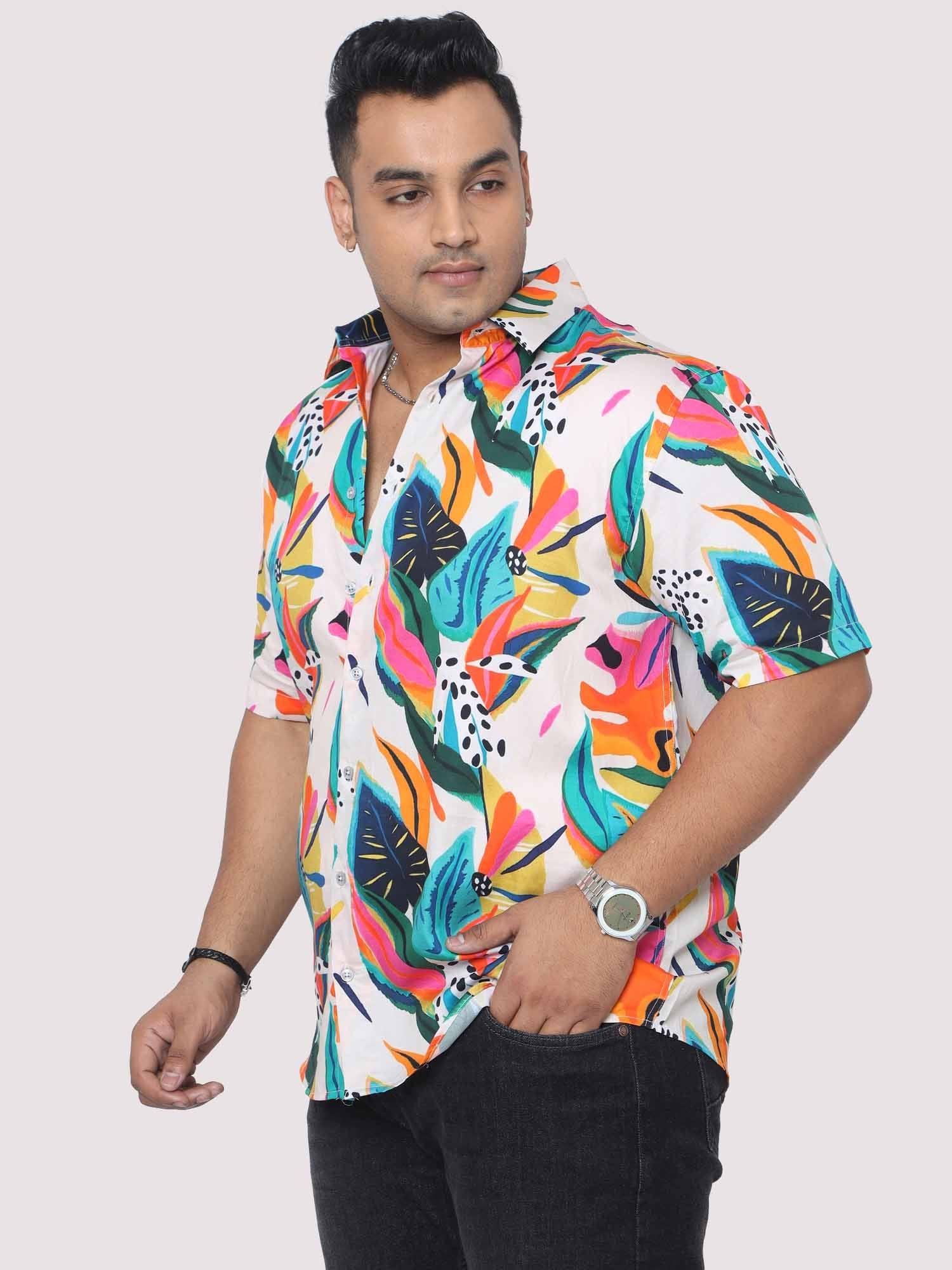 Men Plus Size Coloured Leaves Digital Printed Half Shirt