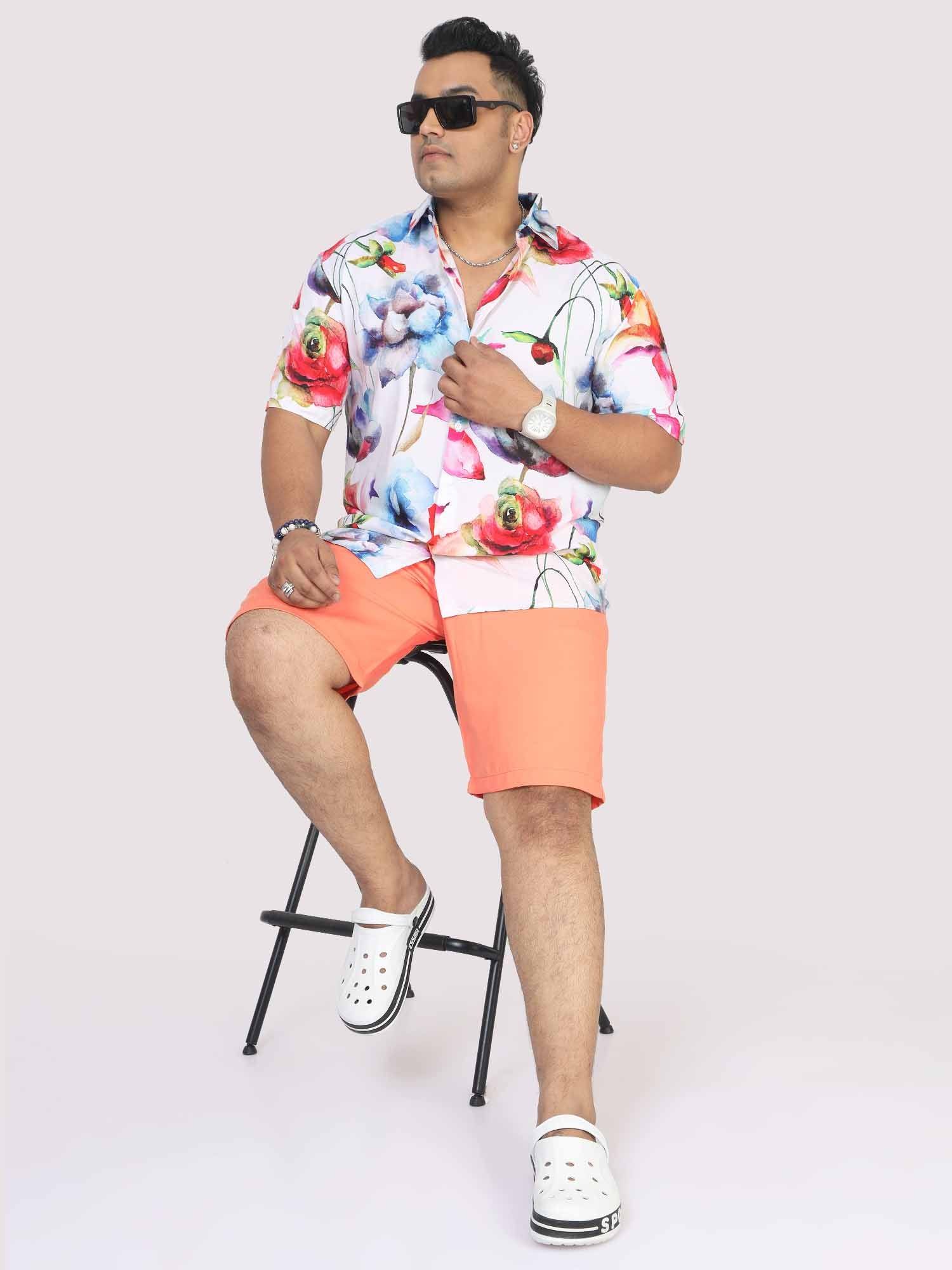 Men Plus Size Watercolour Flower Digital Printed Half Shirt